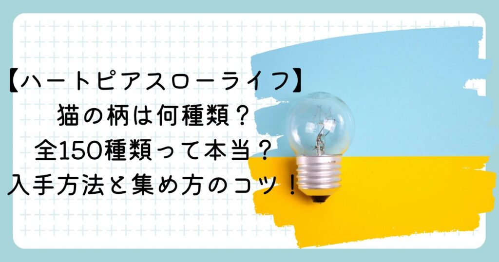 【ハートピアスローライフ】猫の柄は何種類?全150種類って本当?入手方法と集め方のコツ!