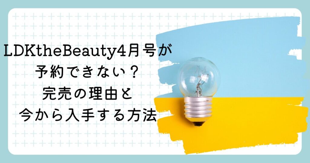 2026年2月20日発売予定の「LDK the Beauty 4月号」。 SNSや検索で今、「予約できない」「どこも売り切れ」という声が一気に増えています。 この記事では、 なぜ予約できないのか 不具合なのか?完売なのか? 今から買える可能性がある方法 を調査していき... -